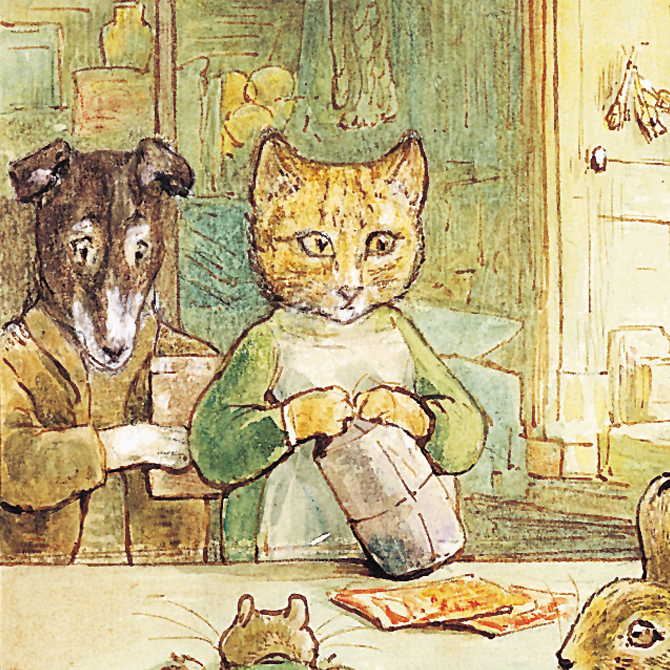 『ジンジャーとピクルスのおはなし』で、黄色い雄猫のジンジャーと猟犬のピクルスは村で雑貨屋をやっています。この店はありとあらゆるものが揃っているので、動物たちから大変人気があるのですが少しもお金がたまりません。客たちはお金をはらわず「つけ」にしてしまうからです。お店はどうなってしまうのでしょうか。