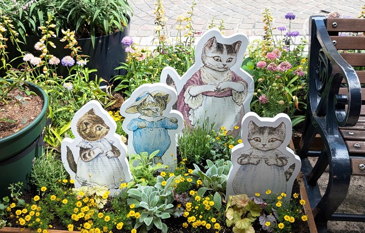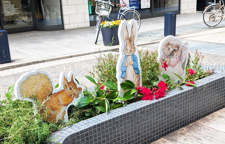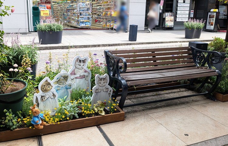 通りの花壇では、もう何年も当たり前にこの場所にいるかのように、しっくりと佇むタビタおくさんとこどもたちの装飾が。