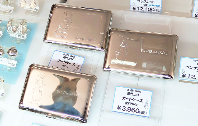 鏡のようにつややかな銀仕上げのオリジナルカードケースも。