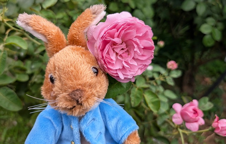 ピーターのぬいぐるみを近づけると、パクッと食べてしまわないか心配になるような写真になりました。