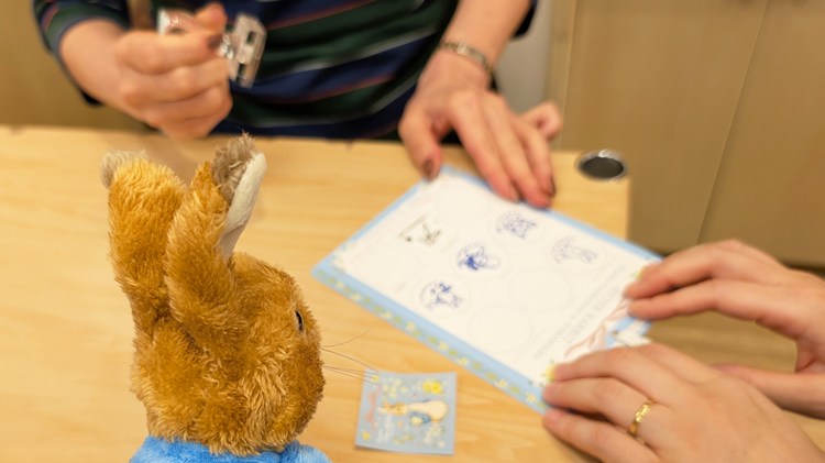 こちらでは、ピーターラビットのスタンプを押すことができました。