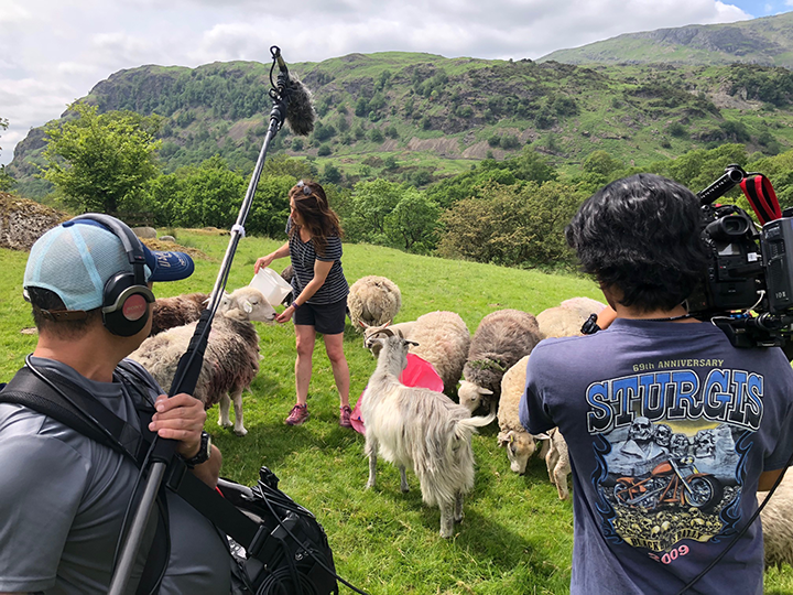 広大な牧草地が広がる丘陵地帯での取材