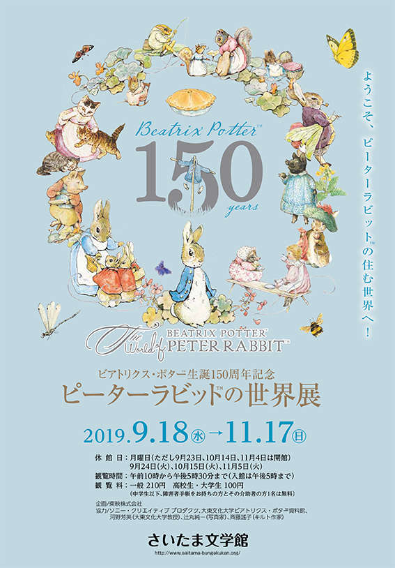 ビアトリクス・ポターの生誕150周年を記念した展覧会「ピーターラビットの世界展」が2019年9月18日(水)から11月17日(日)まで、埼玉県さいたま文学館にて開催中!