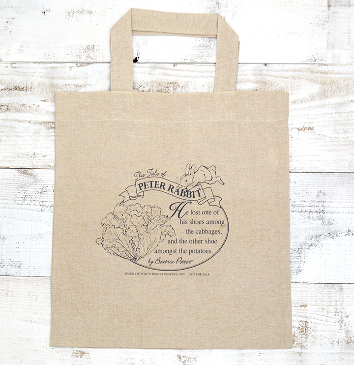 また、期間中ピーターラビット商品を5,000円(税別)以上お買い上げの方先着200名様に、お買い物のエコバッグとしてもお使いいただける非売品トートバッグをプレゼントいたします。