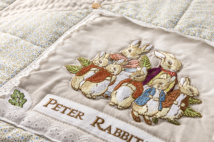 精度の高い刺しゅうにより、ピーターラビットをはじめとする多くのキャラクターたちがまるで絵本そのままのように、細部まで再現されています。