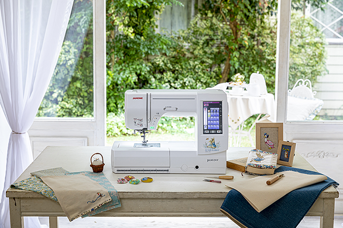 ピーターラビットの刺しゅうデザイン100種が内蔵された、刺しゅう機能つきミシンです。