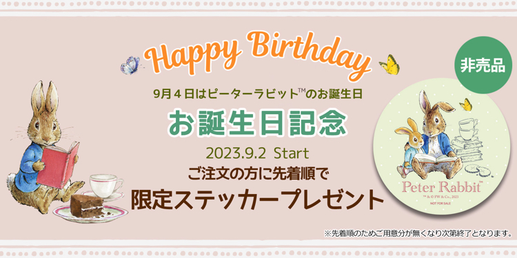 ピーターラビット誕生日記念!公式オンラインショップにて先着プレゼント!
