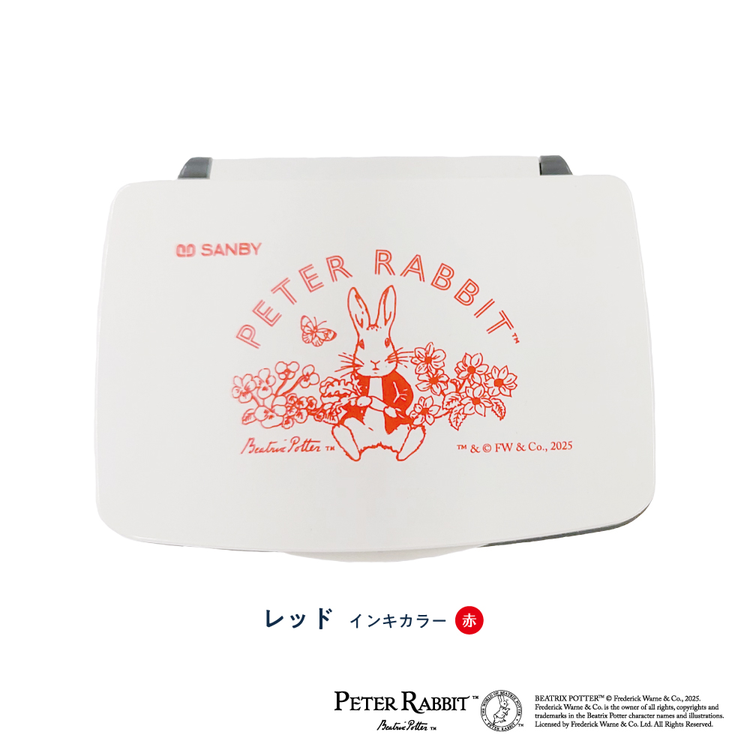 スタンプパッドはフタの上部に、それぞれのインク色でピーターラビットが印刷された、サンビー製のスタンプパッドです。日付印とセットで使用すればさらに楽しさが広がります。