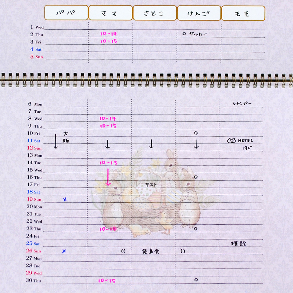 5人分使わないときは、家族共通の予定をいれたり、習い事のことを書き込んだりもできます。使い方はあなたのファミリー次第!