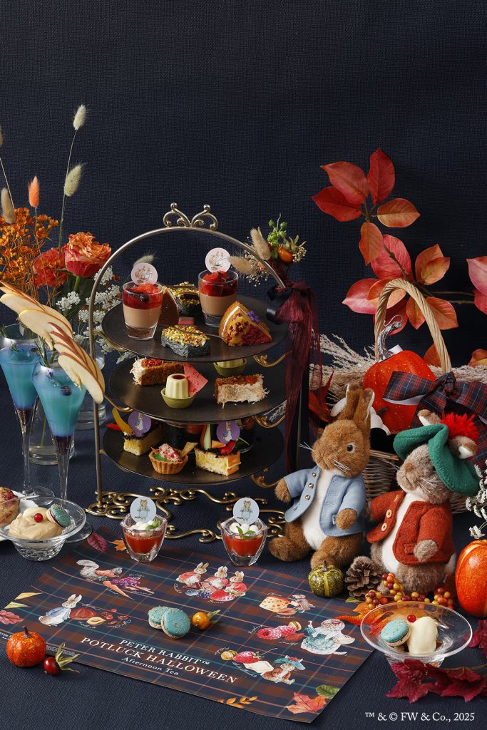 ピーターラビット™と仲間たちがお菓子や料理を持ち寄ってハロウィンパーティーを開催。ピーターのジャケットカラーのマカロンをのせたイートンメスをはじめ、イギリスの伝統菓子を絵本『ピーターラビットのおはなし』シリーズの世界観でアレンジいたしました。