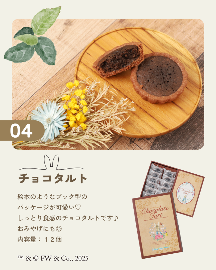 ④チョコタルト:絵本のようなブック型のパッケージに、しっとり食感のチョコタルト!