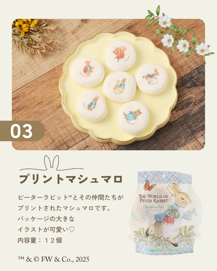 ③プリントマシュマロ:パッケージの大きなイラストが可愛くて人気です💛