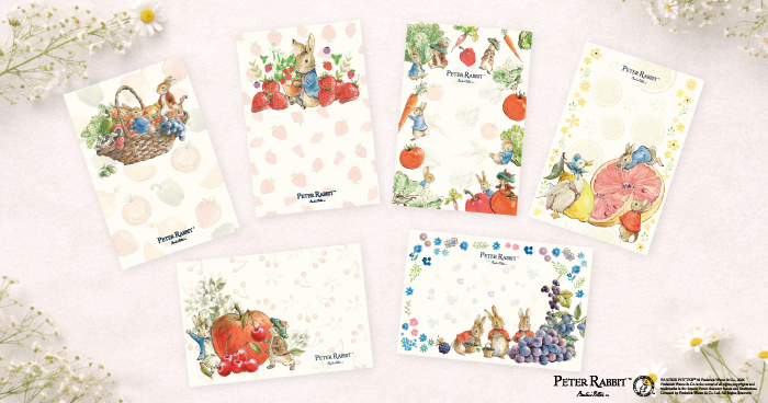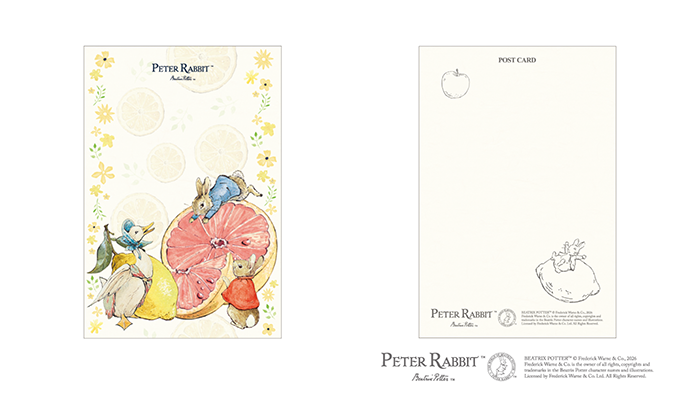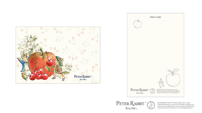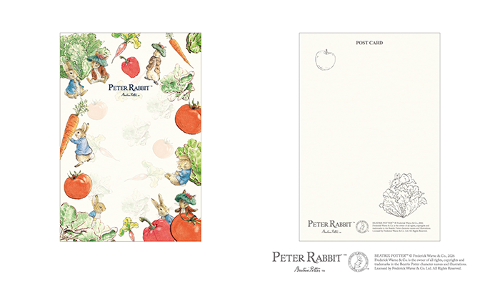 ピーターラビット™の世界を、みずみずしいフルーツ&ベジタブルとともに描いた絵はがきが登場。