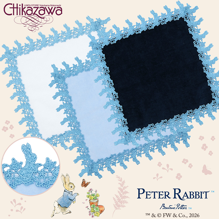 ピーターラビット™近沢レース店ブルーハンカチのご紹介